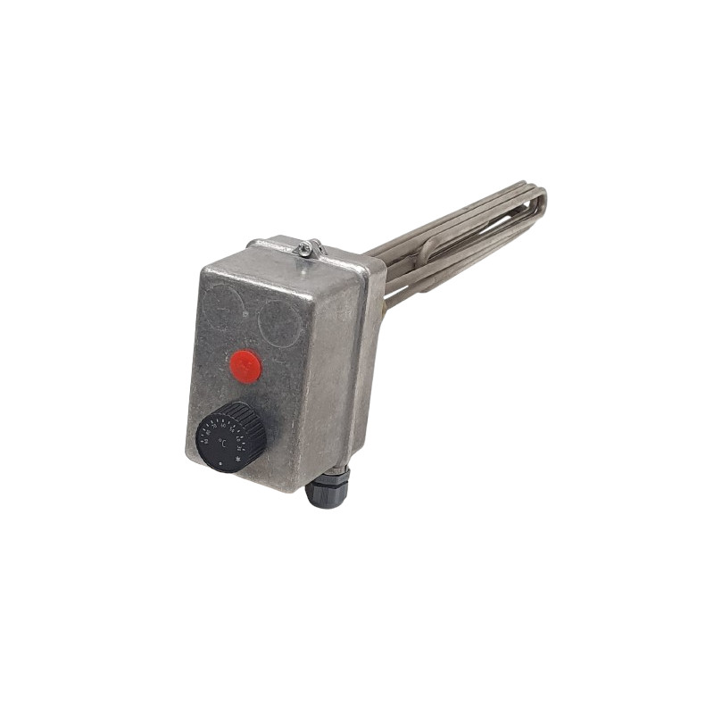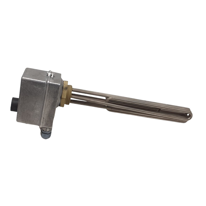 Mellan rörelementen sitter ett dykrör av dimension Ø12×0,7 mm och en längd på 260 mm, avsett för termostat och överhettningsskydd. Elektrisk anslutning med flatstift 6,3 mm.