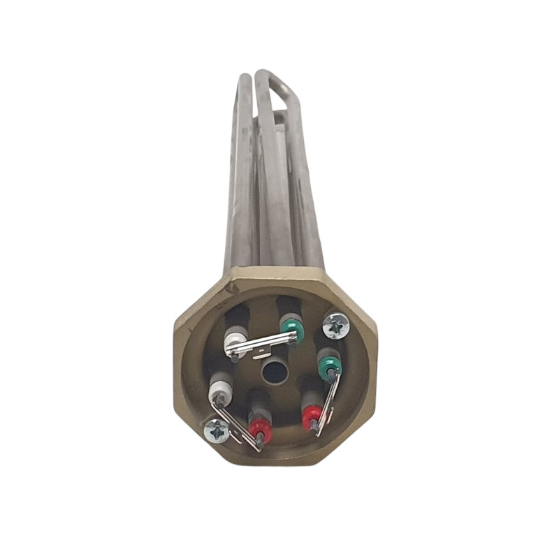 Mellan rörelementen sitter ett dykrör av dimension Ø12×0,7 mm och en längd på 260 mm, avsett för termostat och överhettningsskydd. Elektrisk anslutning med flatstift 6,3 mm.