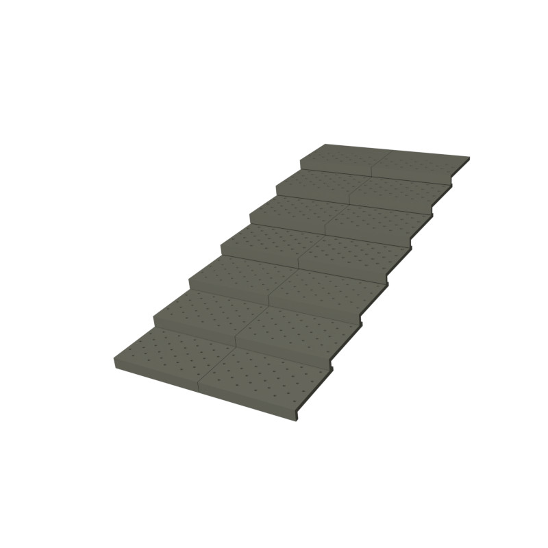 På rad 1-3 nerefrån så sitter det roster med 5mm hål, rad 4-6 sitter det roster med 7mm hål och på rad 7 sitter det roster med 7mm hål på hälften av rostret. Sitter två roster på varje rad.